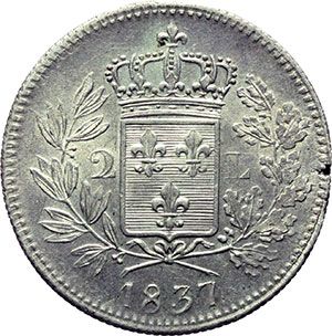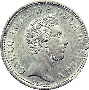 Monete e Medaglie di Zecche Italiane. Lucca. Carlo Ludovico di Borbone (1824-1847). 2 lire 1837. Pag. 261. Mont. 446. AG. g. 9.40 SPL+.
