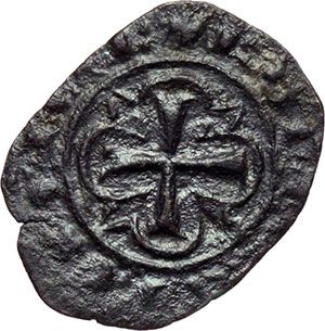 Monete e Medaglie di Zecche Italiane. Messina. Carlo I d'Angiò (1266-1282). Denaro, con palmizio. Sp. 53. MIR -. MI. g. 0.46 RRR. BB+. Conservazione eccezionale per il tipo.