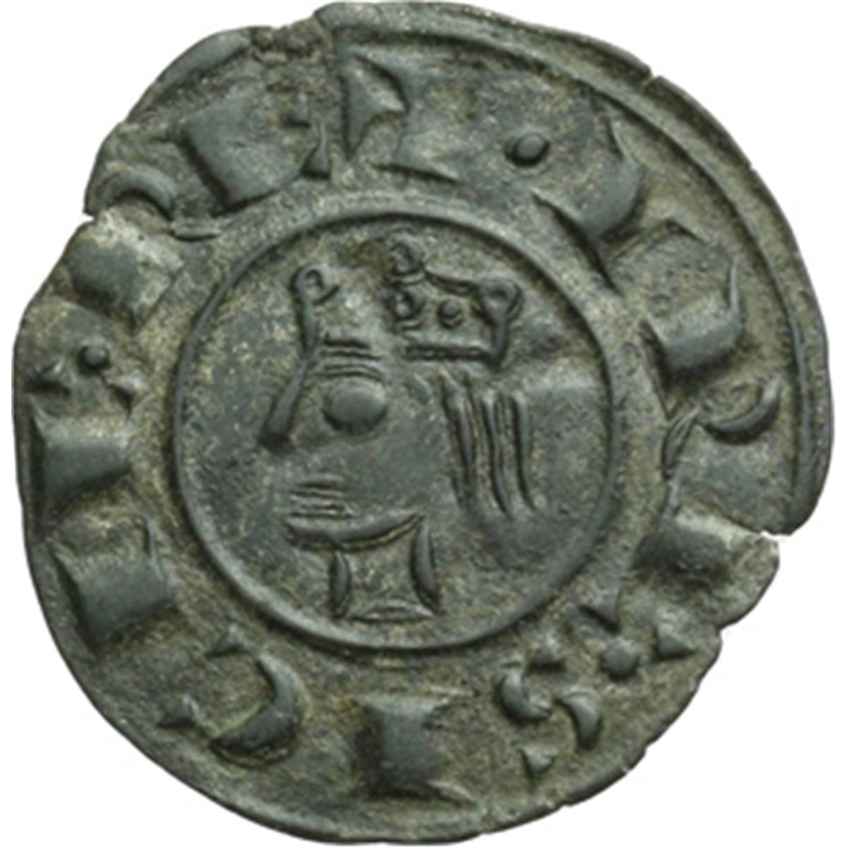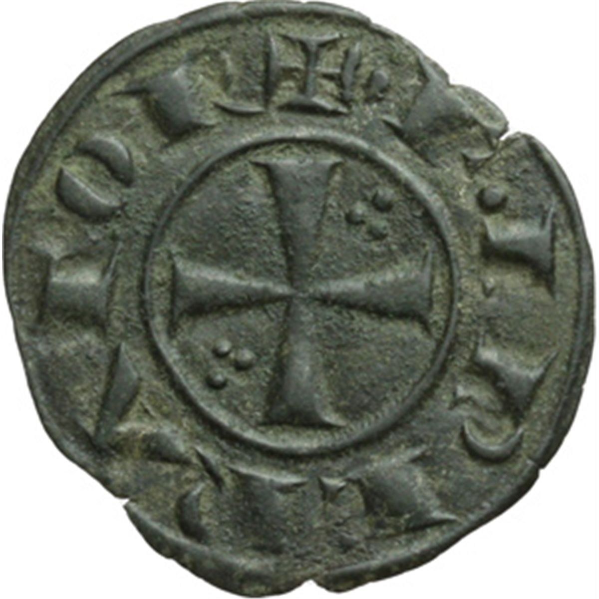 Monete e Medaglie di Zecche Italiane. Messina. Federico II (1197-1250). Denaro 1225. Sp.113. MI. g. 0.67 NC. SPL.