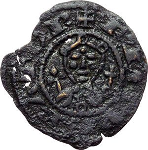 Monete e Medaglie di Zecche Italiane. Messina. Federico II (1197-1250). Denaro, ca 1220. Sp. -. Travaini 19. MIR 88. MI. g. 0.36 RRRR. BB.