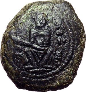 Monete e Medaglie di Zecche Italiane. Messina. Ruggero II (1105-1154). Doppio follaro. Sp. 50/51. MIR 16. AE. g. 6.90 R. BB+.