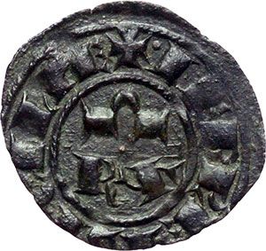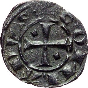 Monete e Medaglie di Zecche Italiane. Messina o Brindisi. Corrado I (1250-1254). Mezzo denaro con RX. Chim-Rapp (Brindisi) 307. MI. g. 0.36 RRRR. SPL.
