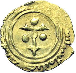 Monete e Medaglie di Zecche Italiane. Messina o Palermo. Ruggero I (1072-1101). Tarì. Sp. 14. MIR 421. AV. g. 0.96 qSPL.