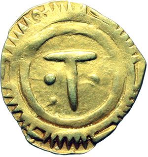 Monete e Medaglie di Zecche Italiane. Messina o Palermo. Ruggero I (1072-1101). Tarì. Sp. 3/15 e 22/30. MIR 7. AU. g. 0.81 R. BB.