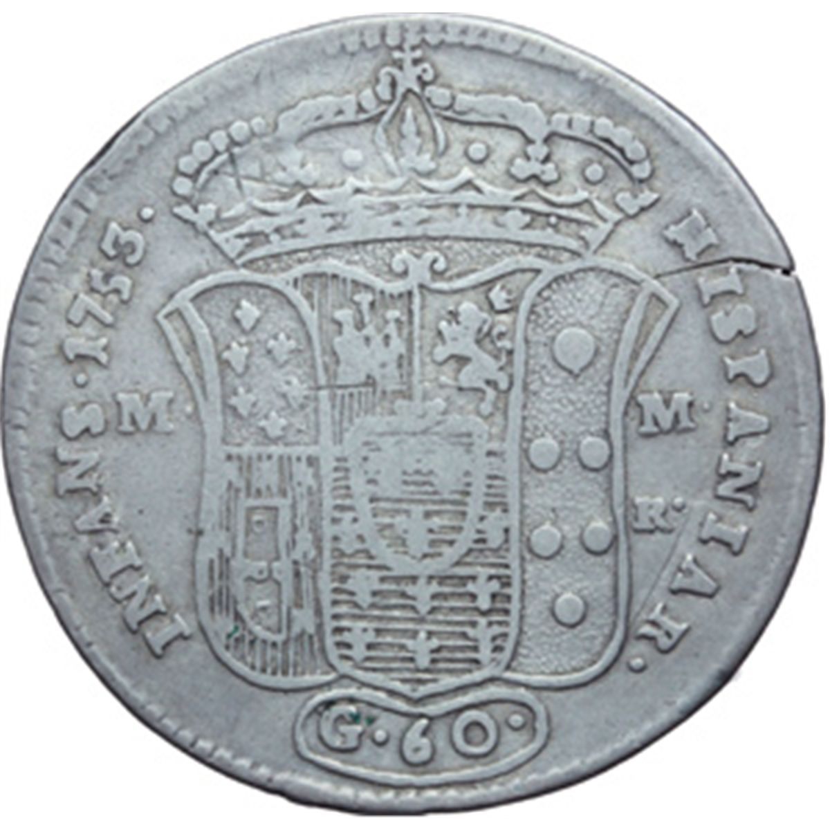 Monete e Medaglie di Zecche Italiane. Napoli. Carlo di Borbone (1734-1759). Mezza piastra 1753. MIR 340/2. P.R. 42. AG. MB/qBB.