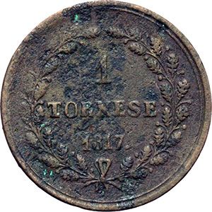 Monete e Medaglie di Zecche Italiane. Napoli. Ferdinando I (1816-1825). Tornese 1817. MIR 471. P.R. 23. AE. g. 3.08 NC. Corrosioni. BB+.