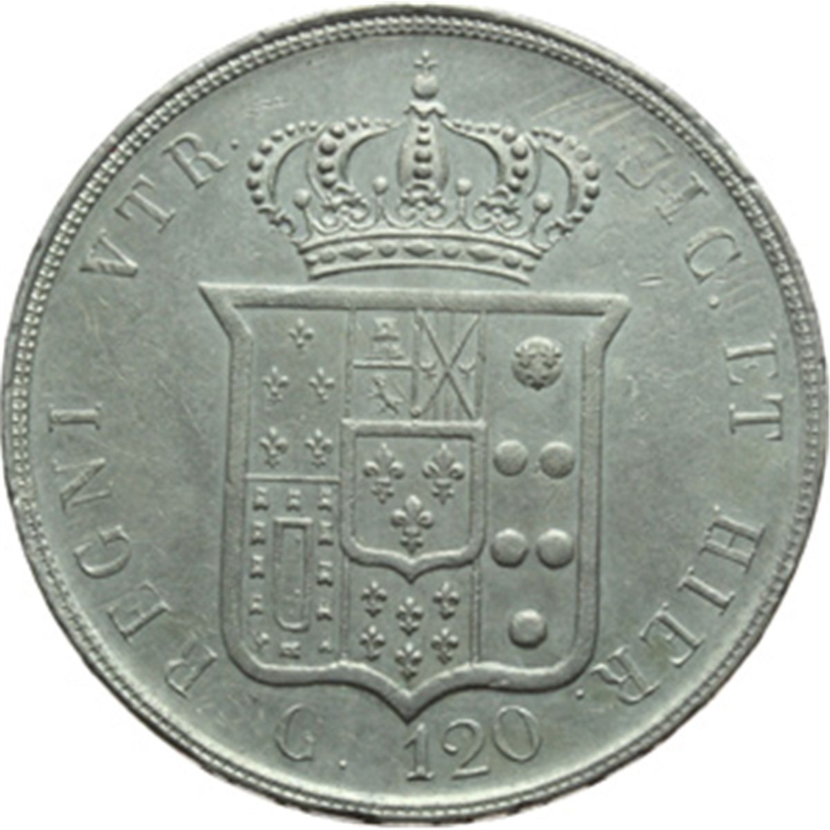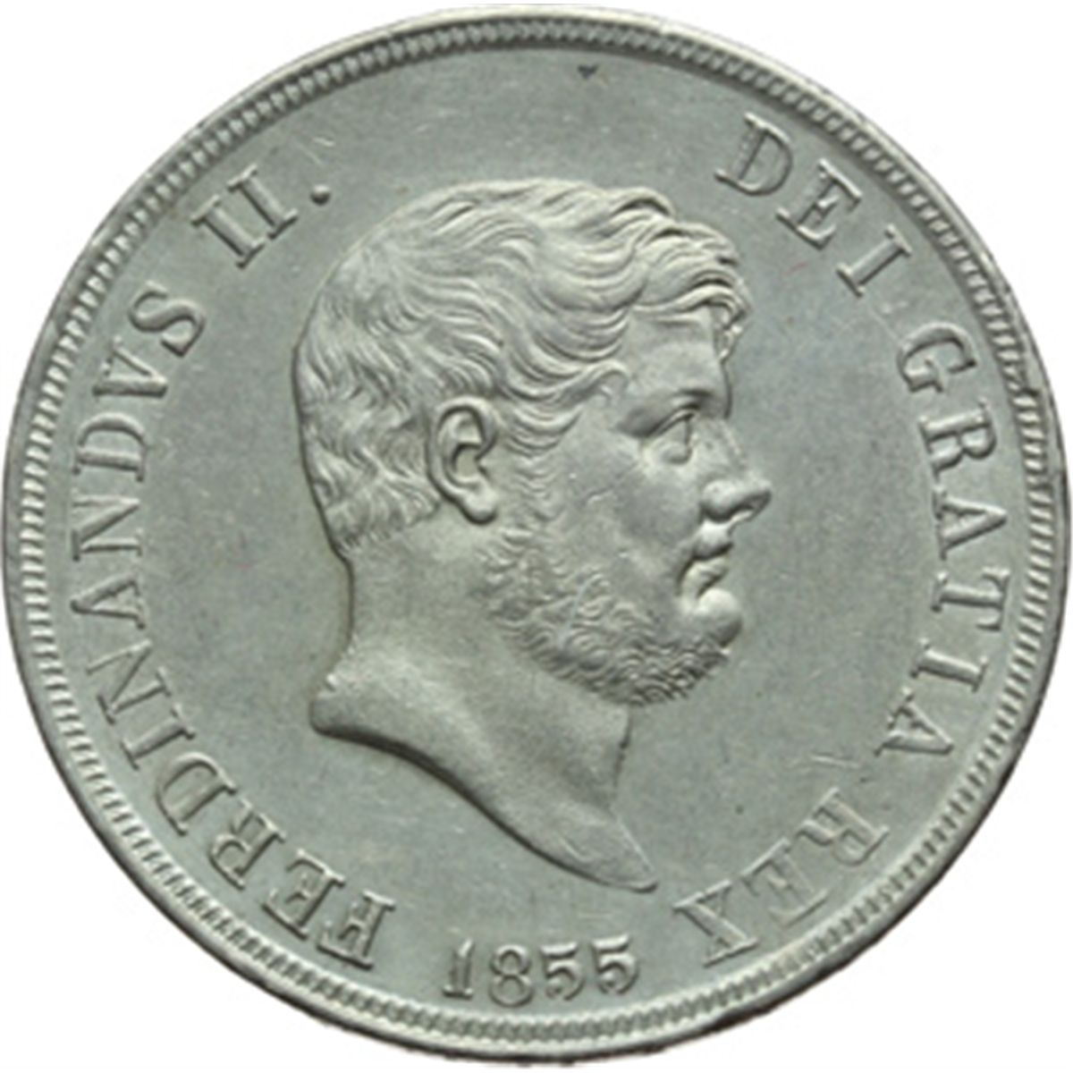 Monete e Medaglie di Zecche Italiane. Napoli. Ferdinando II (1830-1859). Piastra 1855. MIR 503/4. P.R. 84. AG. g. 27.47 BB+/SPL.