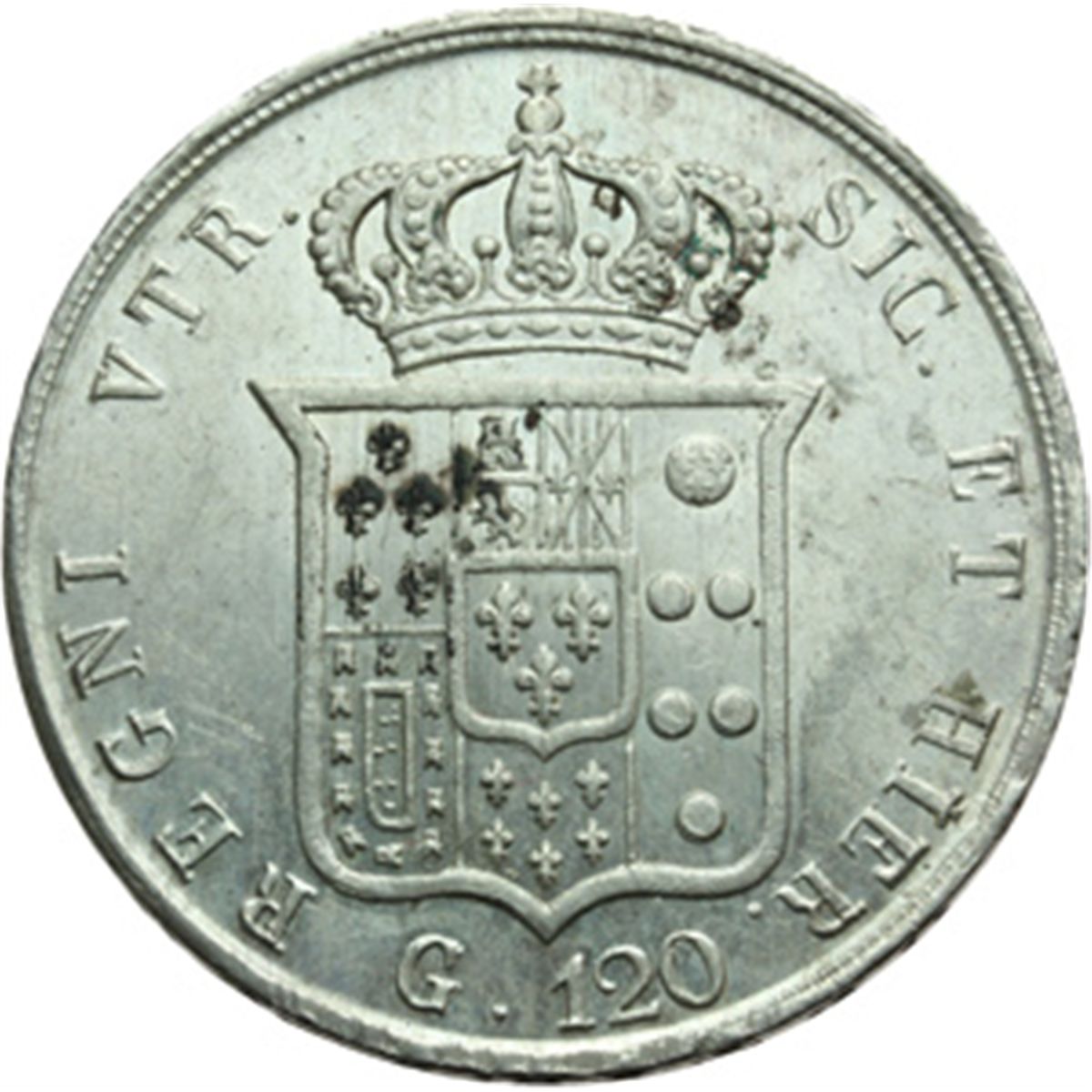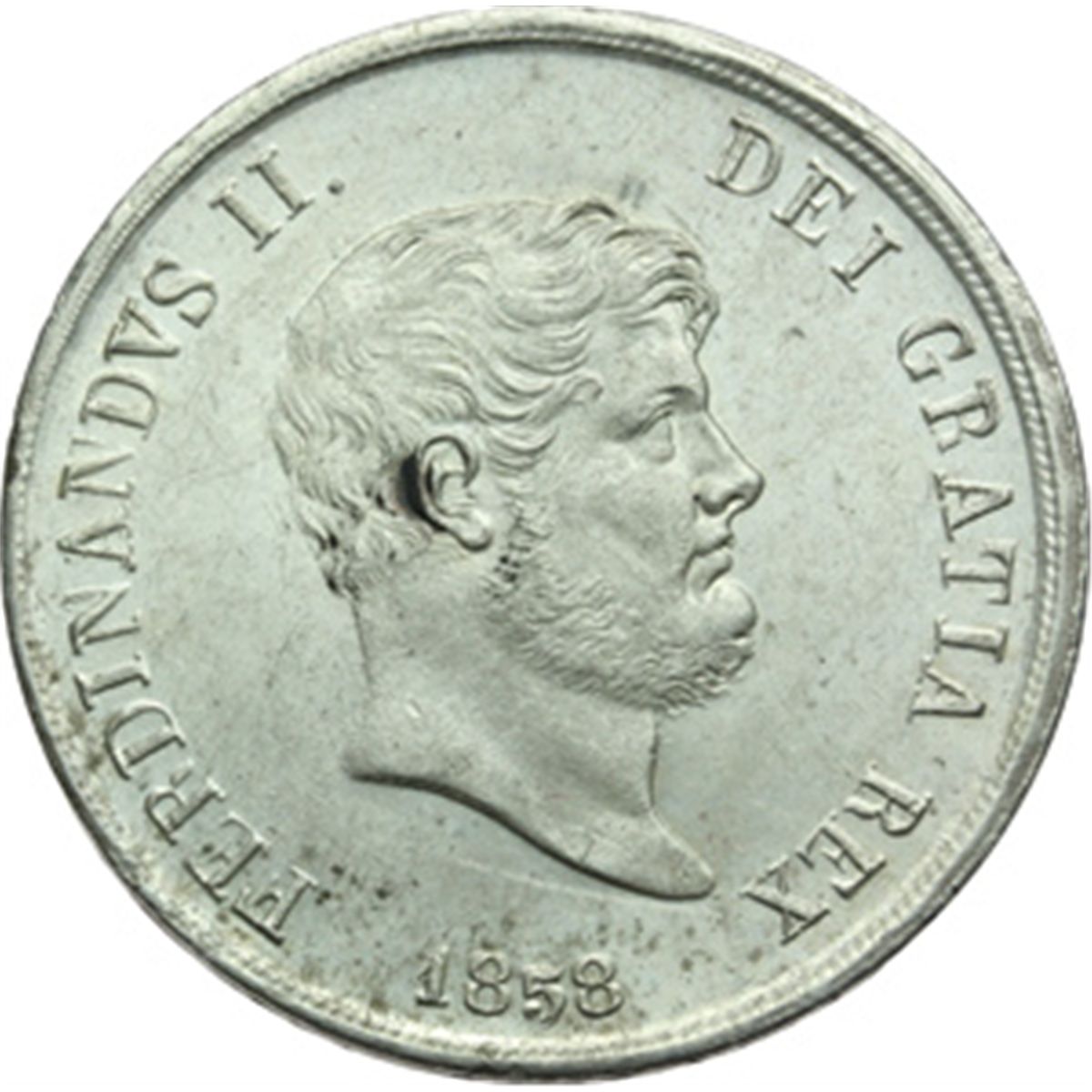 Monete e Medaglie di Zecche Italiane. Napoli. Ferdinando II (1830-1859). Piastra 1858. P.R. 87. AG. qFDC.
