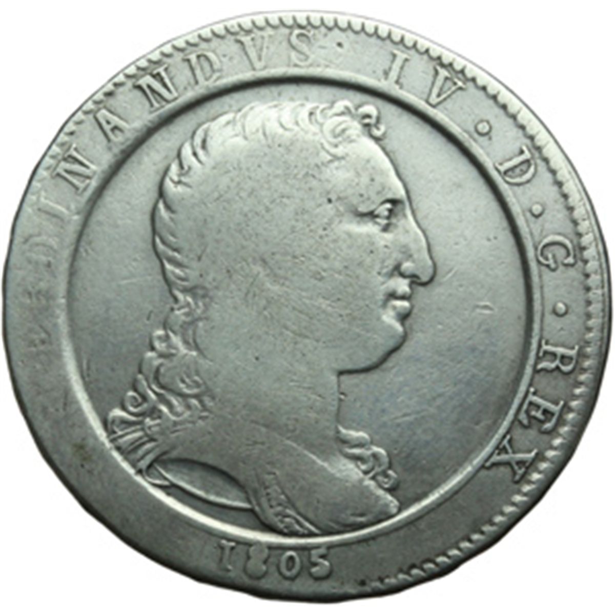Monete e Medaglie di Zecche Italiane. Napoli. Ferdinando IV (1759-1816). Mezza piastra 1805. MIR 425. P.R. 12. AG. g. 13.54 RR. MB+.