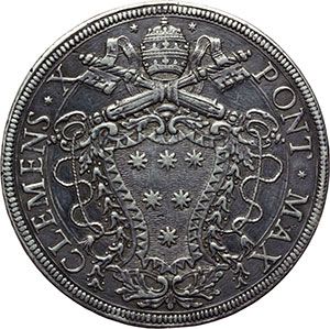 Monete e Medaglie di Zecche Italiane. Roma. Clemente X (1670-1676), Emilio Bonaventura Altieri. Piastra 1675. M. 18. Berm. 2005. AG. g. 31.91 Bella patina di vecchia raccolta. BB+.