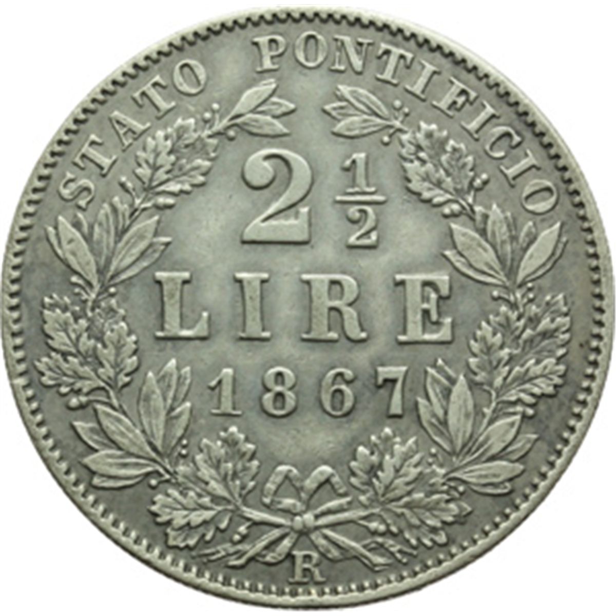 Monete e Medaglie di Zecche Italiane. Roma. Pio IX (1846-1870). 2 lire e mezzo 1867, A. XXI. Pag. 552. Mont. 364. AG. R. MB/BB.