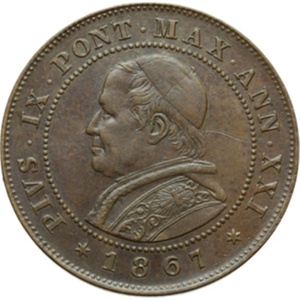 Monete e Medaglie di Zecche Italiane. Roma. Pio IX (1846-1870). 2 soldi 1867, A. XXI. Pag. 599. Mont. 408. CU. Graffietti al D/. qSPL.