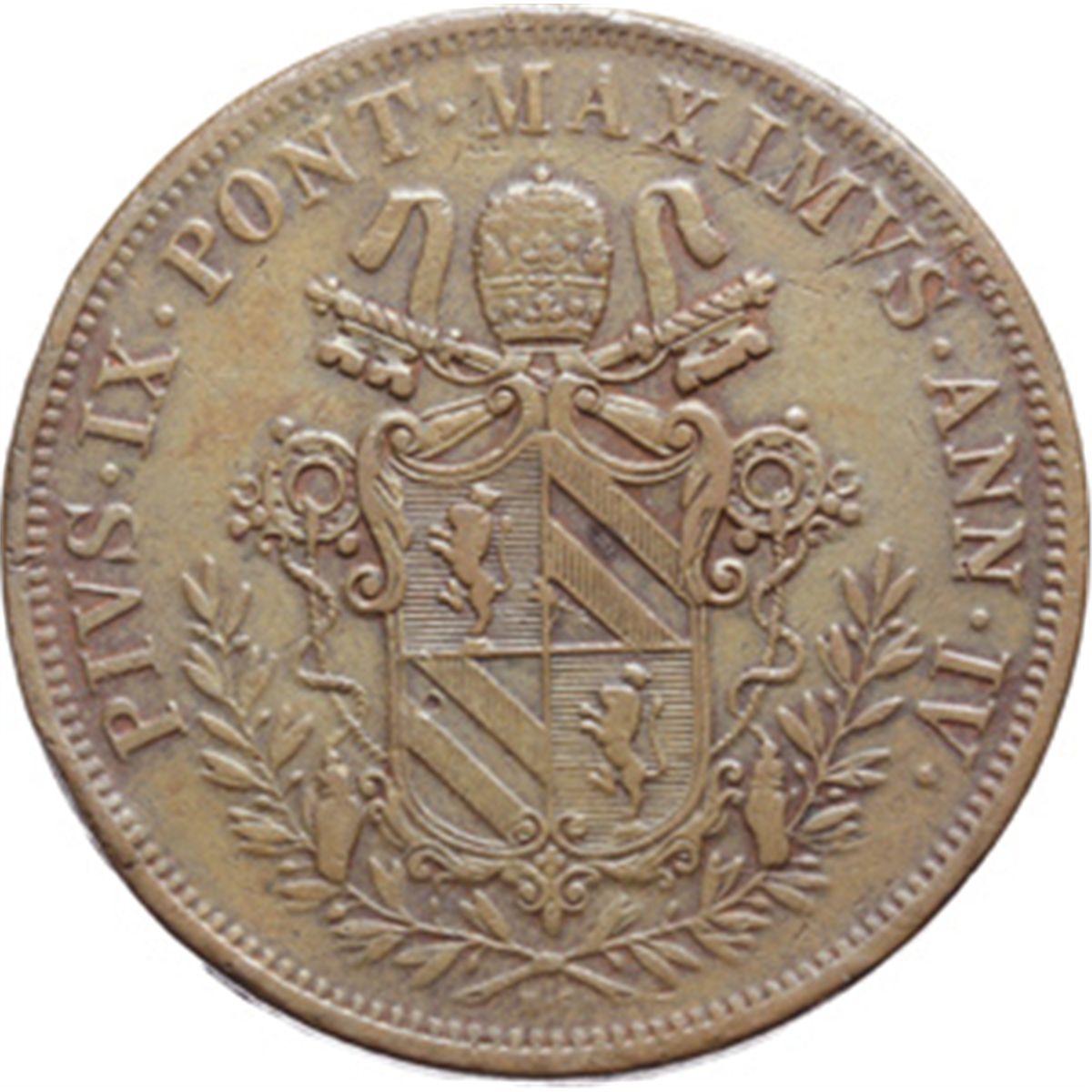 Monete e Medaglie di Zecche Italiane. Roma. Pio IX (1846-1870). 5 baiocchi 1850 R. M. 25a. AE. Bel BB.