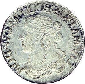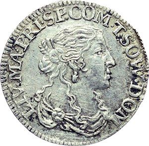 Monete e Medaglie di Zecche Italiane. Tassarolo. Livia Centurioni Oltremarini (1658-1667). Luigino con al R/ l'incuso del D/. AG. g. 2.29 R. SPL. Curiosità interessante.