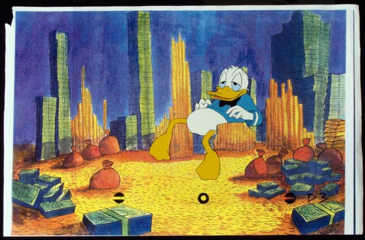 This must be a dream. * * * Original Animation Cel & Printed Background * * Medium: Hand painted acetate celDetails: Animation notations and peg holes * * Size of background: 11 x 17 inches * * Size of cel: 10 1/2 x 12 1/2 inchesCondition: Very good * This is an original hand-painted cel set-up used in the production of the "Walt Disney Shows." Each one-of-a-kind set-up represents a slight change in position of the characters. When individually photographed and projected in rapid succession, the images appear * to move. To created production cels, the original animator's drawing is transferred onto an acetate cel (by hand-inking and/or photo copying). The cel is then hand-painted on the reverse side. The background accompanying this cel is a reproduction printed * background. *