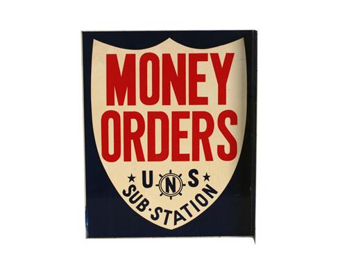 Money Orders  USN  tin 2-sided flange sign  10 x 13 "  exlnt cond
