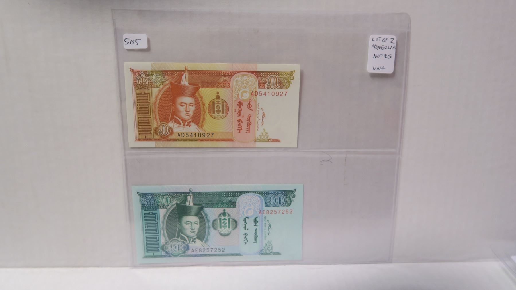 Mongolia. Lot of 2 notes. 2008 5 Tugrik & 2007 10 Tugrik. Uncirculated.