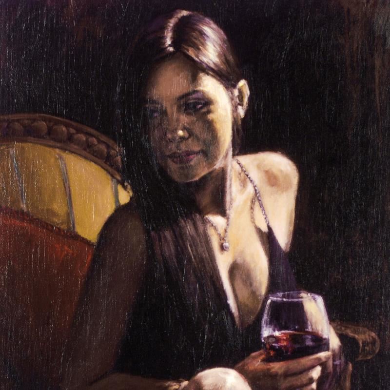 "Monica" is a hand textured limited edition giclee on canvas board by Fabian Perez. The piece is numbered and hand signed. Includes a certificate of authenticity. Measures approximately 16" x 12.5"