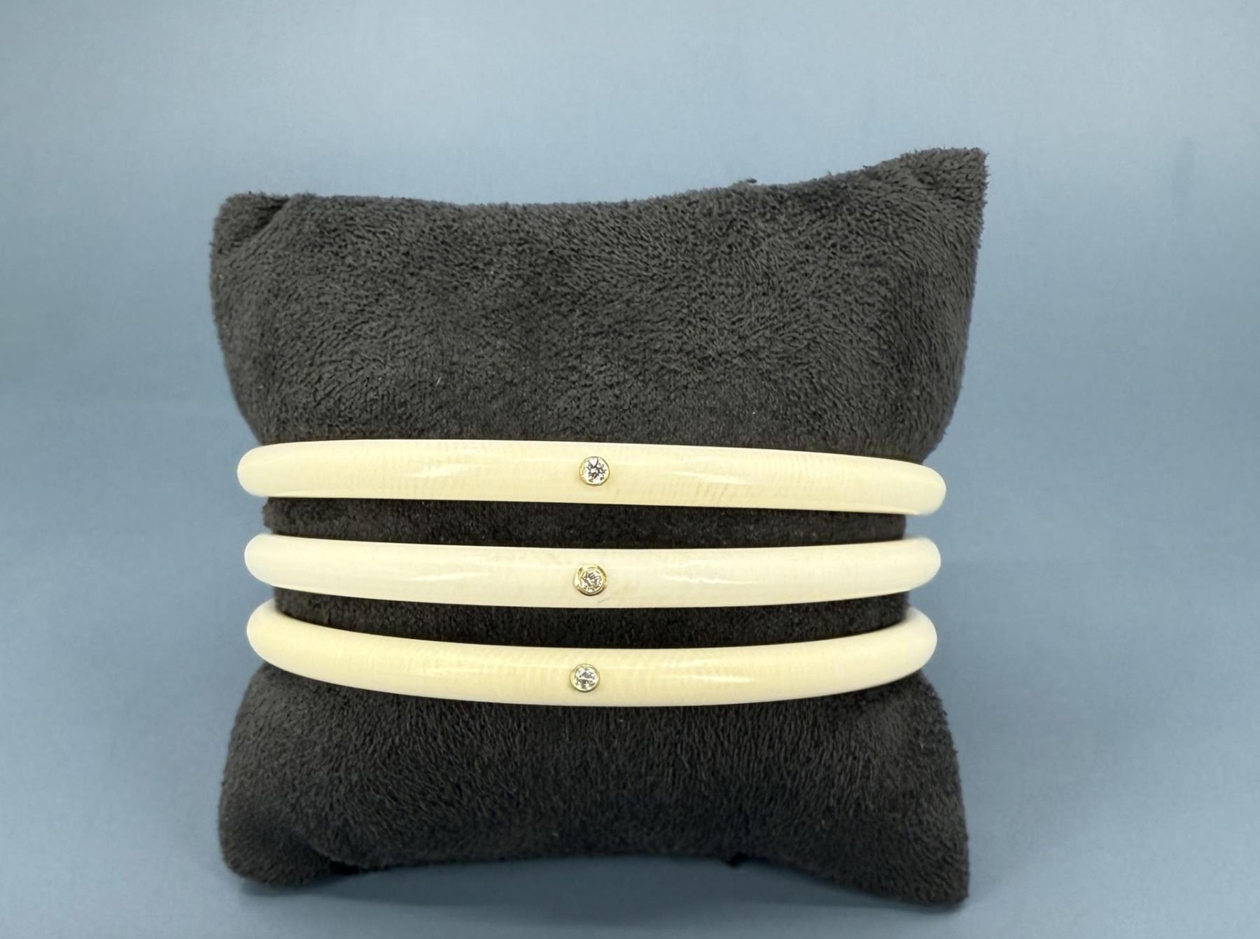 Fossil Walrus Material, Gold and CZ. 2 7/8" diameter, 1/8" wide.