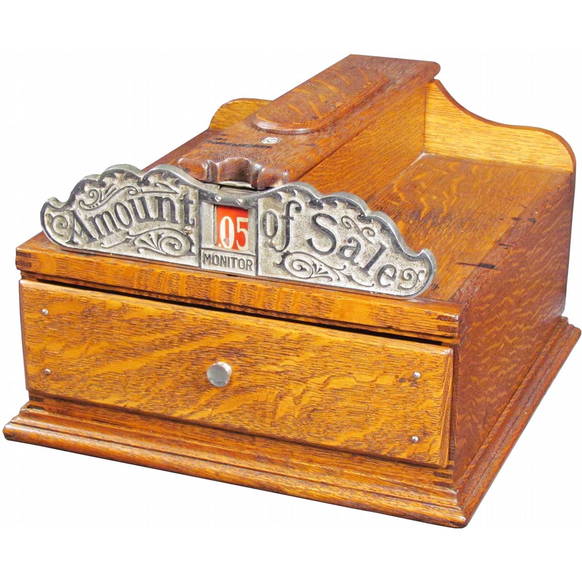 Monitor Barber Shop Cash Register. Oak with cast iron marquee. Comes with full set of price tags. Excellent all original condition.