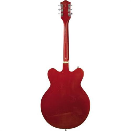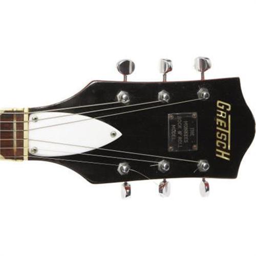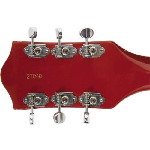 <B>Monkees 1967 "Rock & Roll Model" Gretsch Hollowbody Electric Guitar</B></I> In 1966, the year that the Monkees TV show debuted on NBC, they also had the privilege of having their own line of Gretsch guitars. Built with high-end hardware and electronics, the Monkees guitar (model number 6123) was produced from 1966 to 1969, and featured a Monkees logo on the pickguard and truss rod cover, as well as a plaque on the front of the headstock. Now these collectible guitars are fairly rare, and it is not very often that one hits the auction market. This example is nearly complete, missing only the original pickguard and truss rod cover, two rarities that are often stripped from these models. The cherry red finish still sparkles, and the hardware is all very clean for its age. Neo-classic fret markers adorn both the top and bottom of each fret, a rarity among Gretsches. The Bigsby B-6 tremolo tailpiece also adds an especially "jangly" look to this guitar.<BR><BR>The high end features and exquisite rosewood fingerboard make this beautiful display piece very functional as well, and the dual Supertron pickups are louder than a hoard of screaming Monkees fans. Some light restoration on the cream binding would brighten this beautiful guitar up a little, but as it stands, it is in Excellent condition for its age and rarity. A new hardshell case is included. <B>Condition Report:</B> Some scuffing and scratches on the finish, and some cracks in the cream binding, especially on the crest of the dovetail.<BR><BR><b>Shipping:</b> Musical Instruments, Large (<a target="_blank" href="http://www.heritageauctions.com/common/shipping.php">view shipping information</a>)