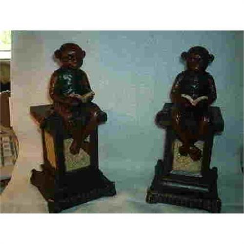 </font></strong>9.1/2" tall. 4" square bases. Each monkey reading a book and wearing a green waistcoat.Circa 1960? They appear to be made of a molded resin. </font>