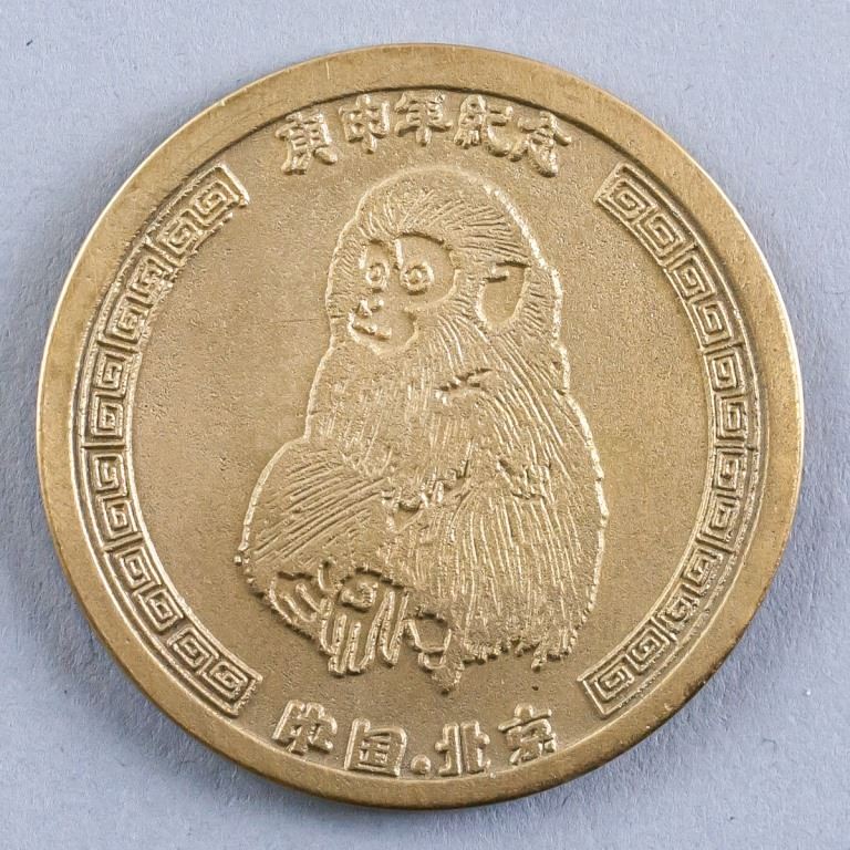 Chinese token. Commemorating the Chinese Zodiac. Featuring monkey. Diameter: 4.5 cm. 26 grams