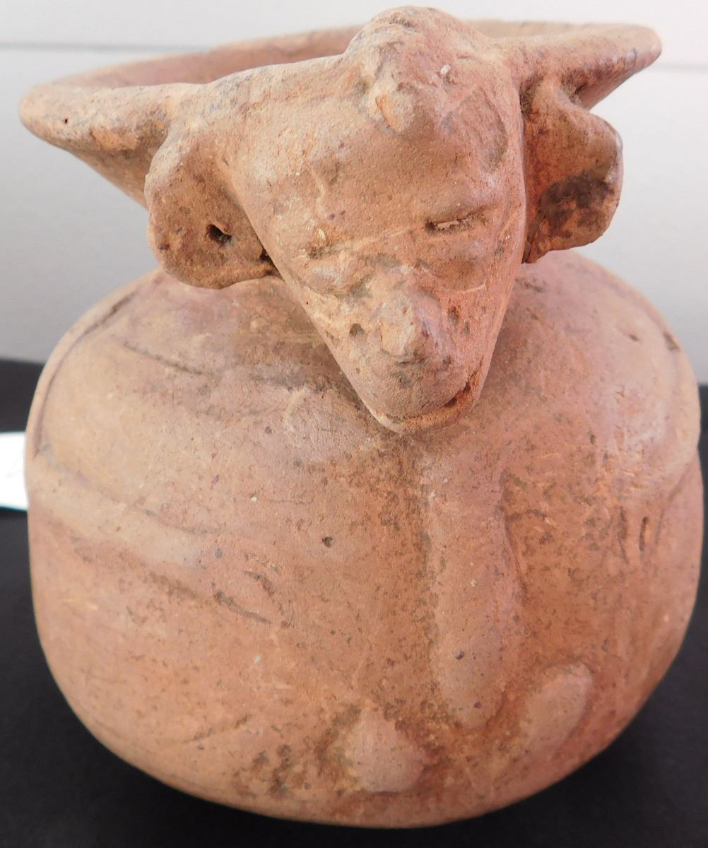 Monkey Effigy Bowl, circa 500 AD. Made of ceramic and measuring 5" x 4" x 4". From Costa Rica. Condition: Minor scuffs and nicks, see images. Shipping: $20.