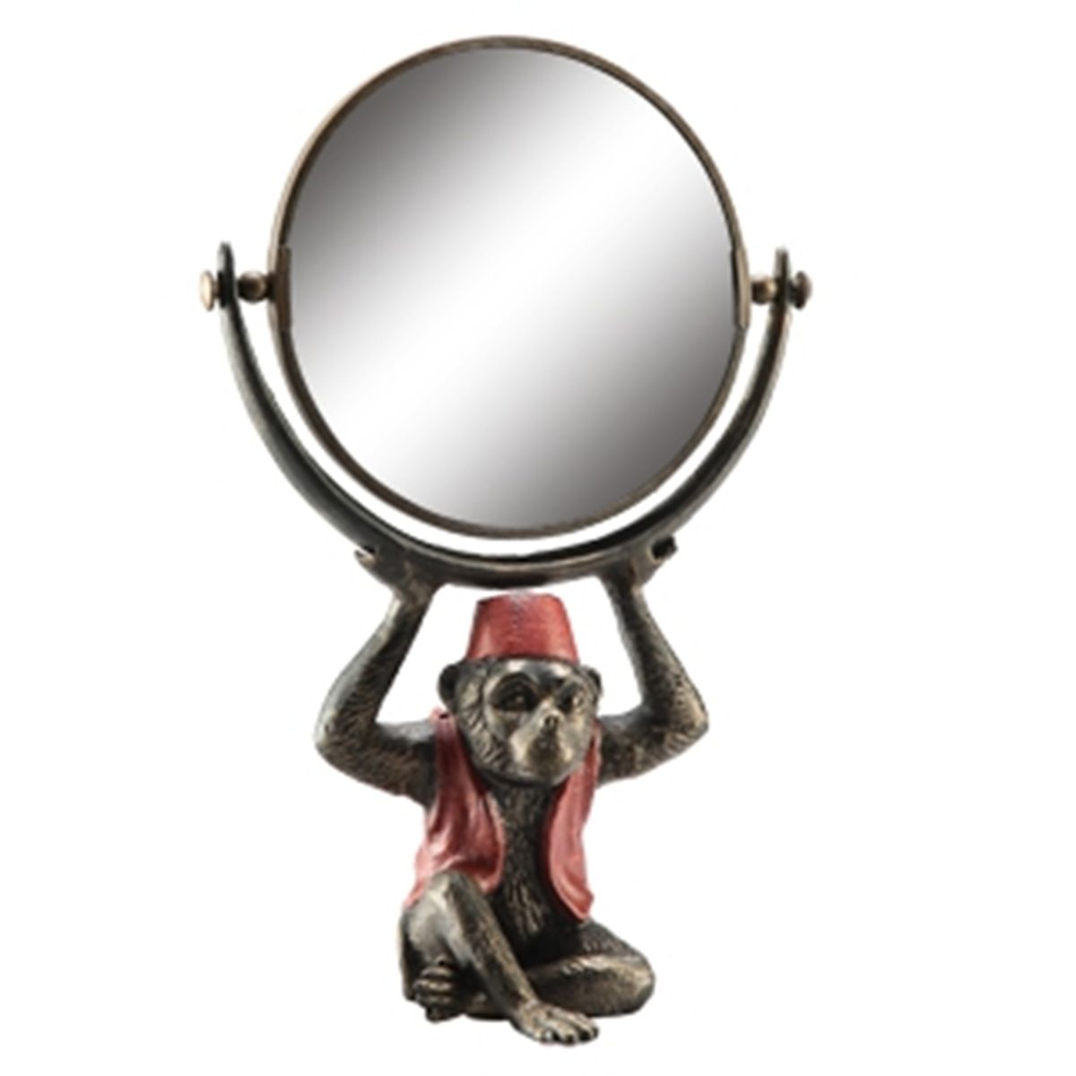 Monkey Mirror - 14.5"H 9.5"W 5.5"D - Brass, Aluminum & Glass