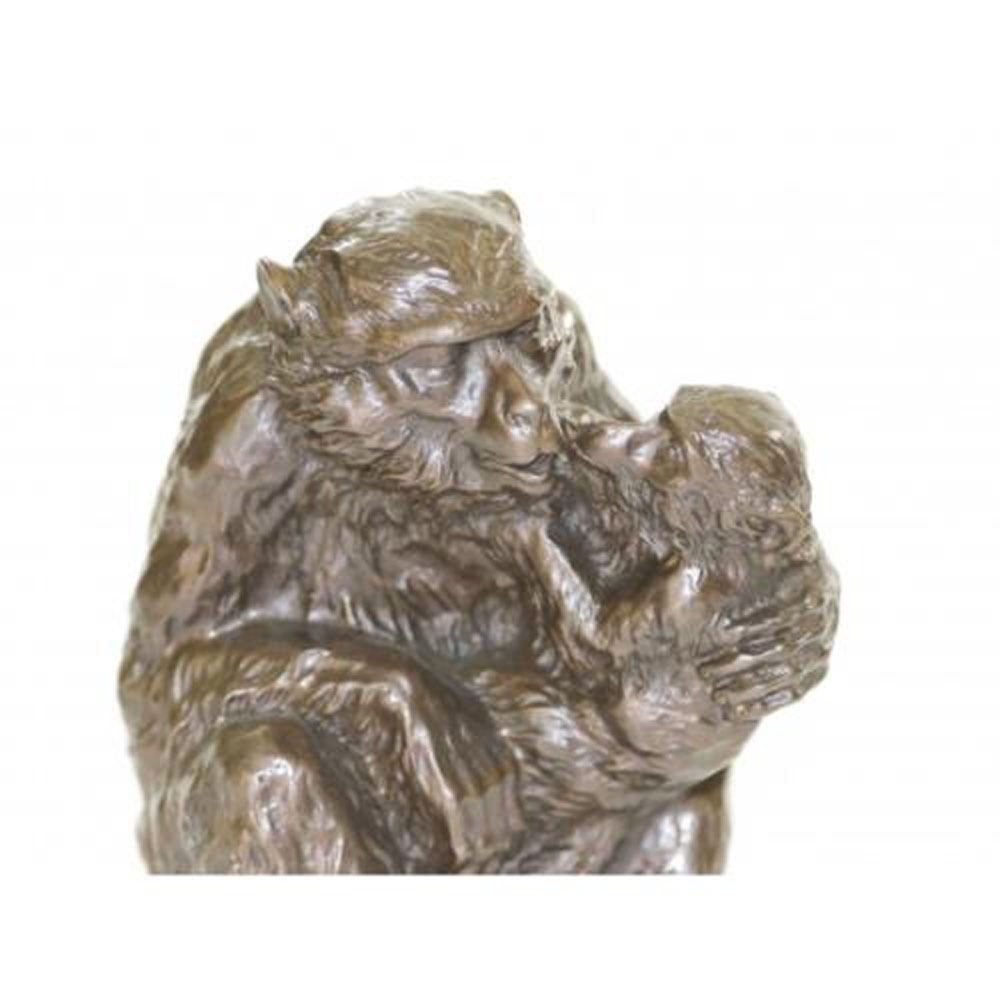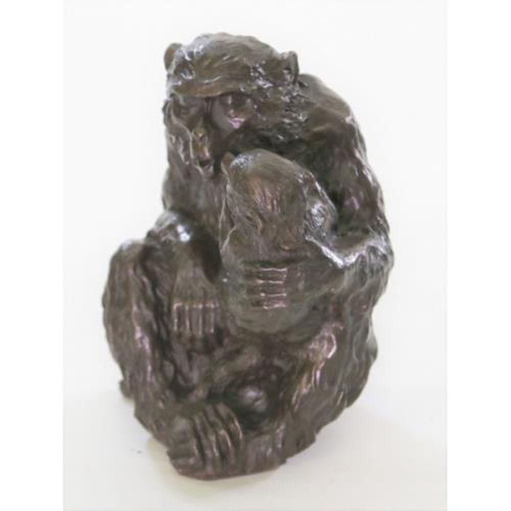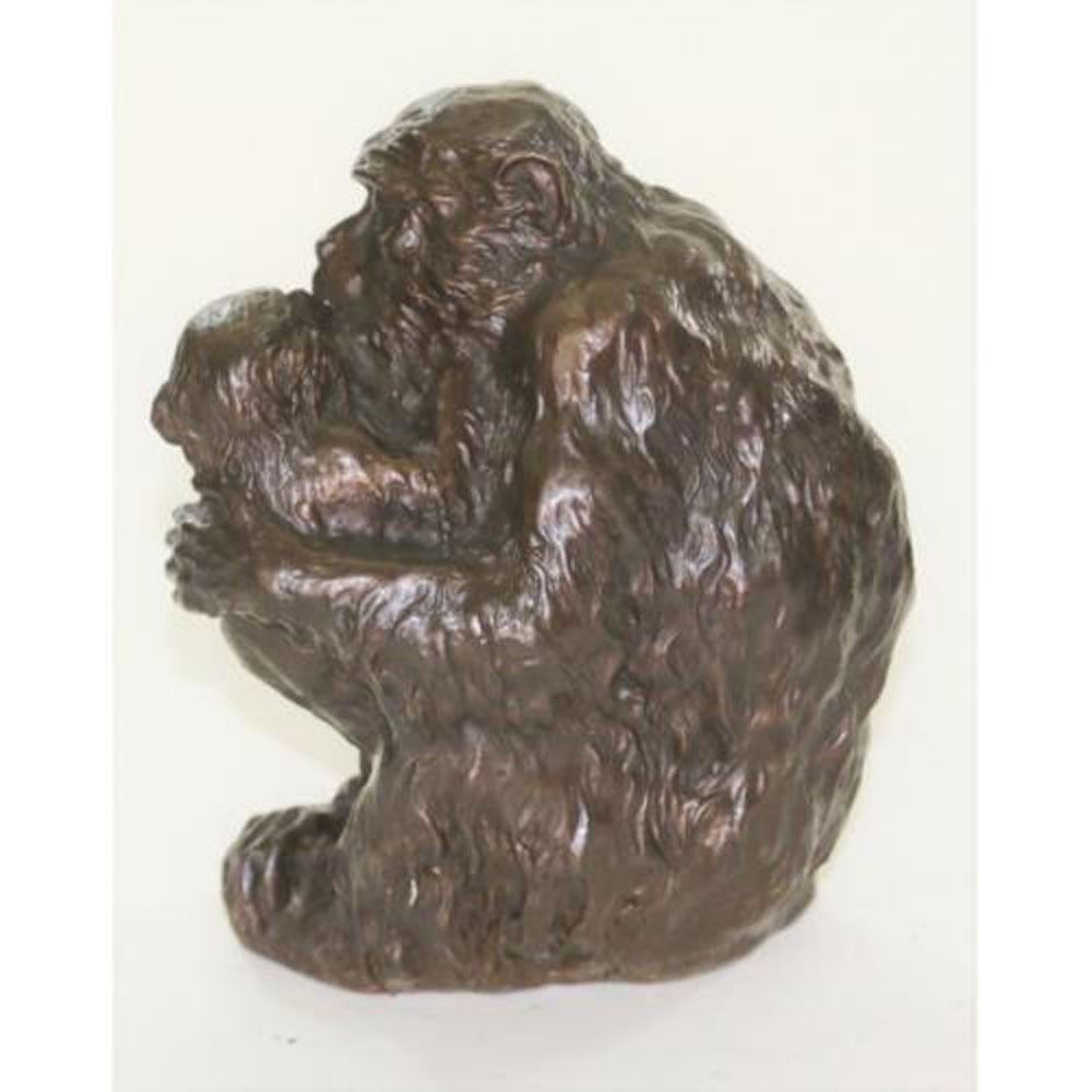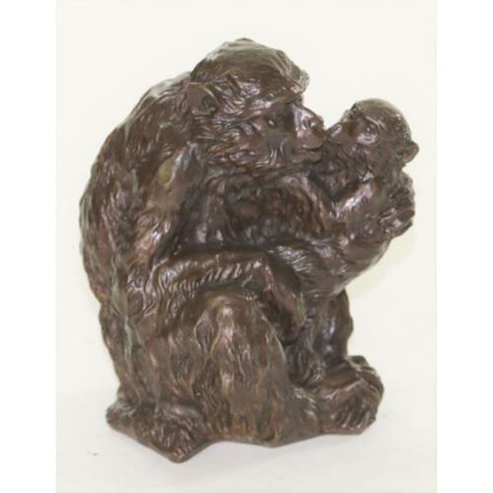 A Mother Love Is A Universal Concept Between Mankind And Wildlife. She Creates Life And Then Provides, Nourishes And Protects It. In This Sculpture A Gorilla Sits Leisurely With Her Offspring. The Young Baby Sits In Between Its Mother Protective Arms And Playfully Rubs The Side Of Her Face. The Mother Gazes Thoughtfully And When She Is Ready To Move, She Will Scoop Her Infant Up In Her Arms. Infants Stay With Their Mothers For 3 or 4 Years. Though They Strike Out On Their Own Earlier Than Humans, The Bond Between Mother And Child Is Startlingly Similar. This Is A Loving Sculpture To Give To The One That Held You Once, The Way This Mother Holds Her Own. This Brown Patina Sculpture Was Cast Using The Lost Wax Method. Bronze Dimensions: Height 7 X Width 6 Inches. Weight: 5 LBS.