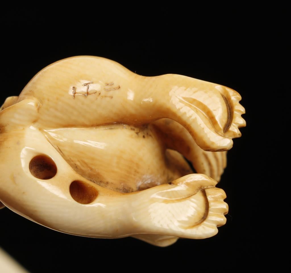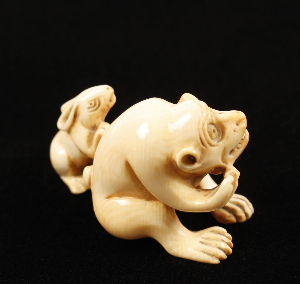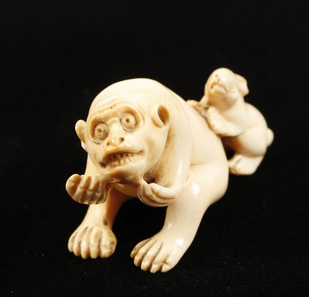 The story of monkey and rabbit: "Monkey and rabbit are friends. The monkey is continually scratching himself and rabbit is always sniffing and flopping his ears about. These habits annoy the friends so they decide to try sitting still for one day and the first one to show his bad habits loses. To amuse each other while sitting still they decide to tell stories to one another. As each tells their story the monkey scratches to illustrate his tale and the rabbit sniffs the air and flops his ears about during his story, Each argues that the other has lost until they finally reach the conclusion that being friends means they should accept each other's bad habits." Monkey figurine sits with arms outstretched with rabbit sitting behind him with his front paws on the monkey. Whimsical piece that may start a story! Can only be sold in the state of Arizona by law and commerce, cannot be shipped.