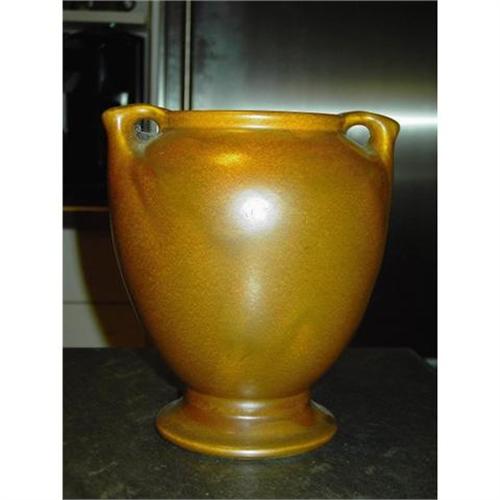 Monmouth Vase, shouldered double handled form in a brown matt, paper label, marked, 7"h in excellent condition. Another pair in mustard also available for sale.