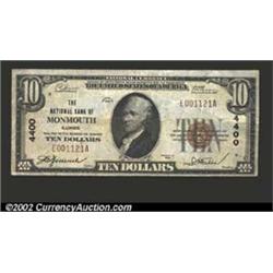 Monmouth, IL - $10 1929 Ty. 1 National Bank of Monmouth Ch. # 4400Very Fine+. One tiny edge tear is.