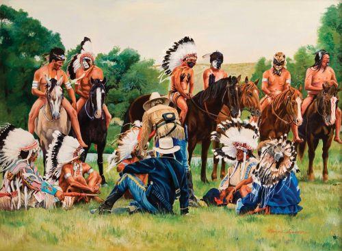Monna Dancer (20th Century). 18" x 24". Oil on Canvas. "Custer Battlefield". (est $1,000-2,000)