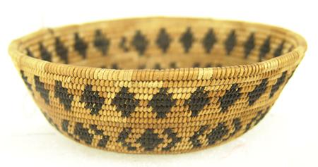 Circa 1900, Small flared polychrome bowl with rattlesnake  diamond designs.  Very good condition.  Ex: Frank  Curley collection. 1-1/2" x 5"