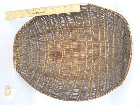 Ca. 1930s, Classic old well-used winnowing basket with great patina. Good condition. 19" x 14-1/2" x 4-3/4"