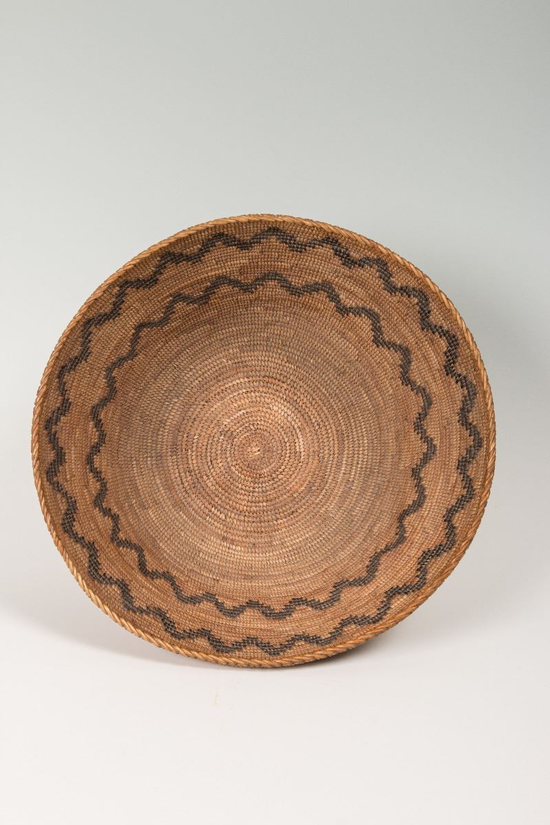 Mono Coiled Bowl. 5 ½" x 10 ½". Fine weave with zig-zag designs. Circa 1900.