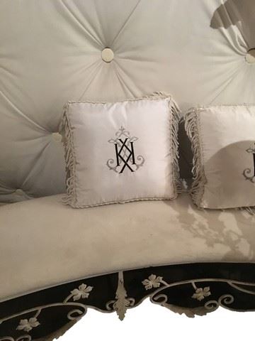 Kim Kardashian/ Kris Humphries K monogram pillow. The pillows are custom-made silk with metallic silver thread in the background design.