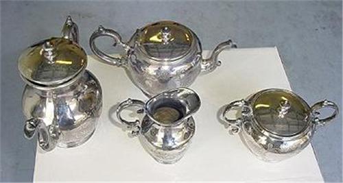 Monogrammed silver plate tea service