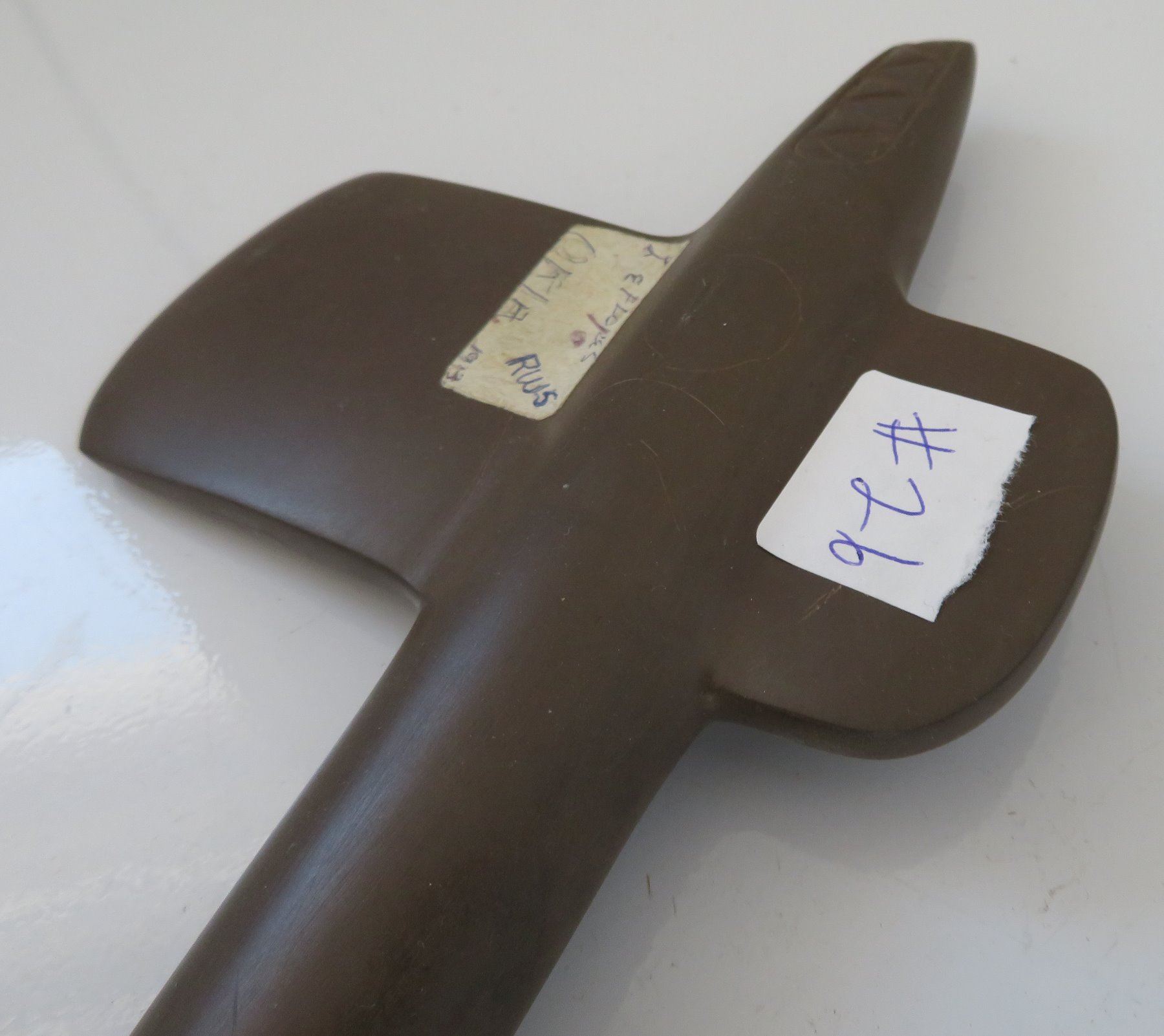 Monolithic Axe, historic item. Made of hardstone, the item measures 12" x 5 1/2" x 1 1/2". Oklahoma. Condition: Very fine, see images. Shipping: $45.00 USA estimate only, due to value, double-boxed.