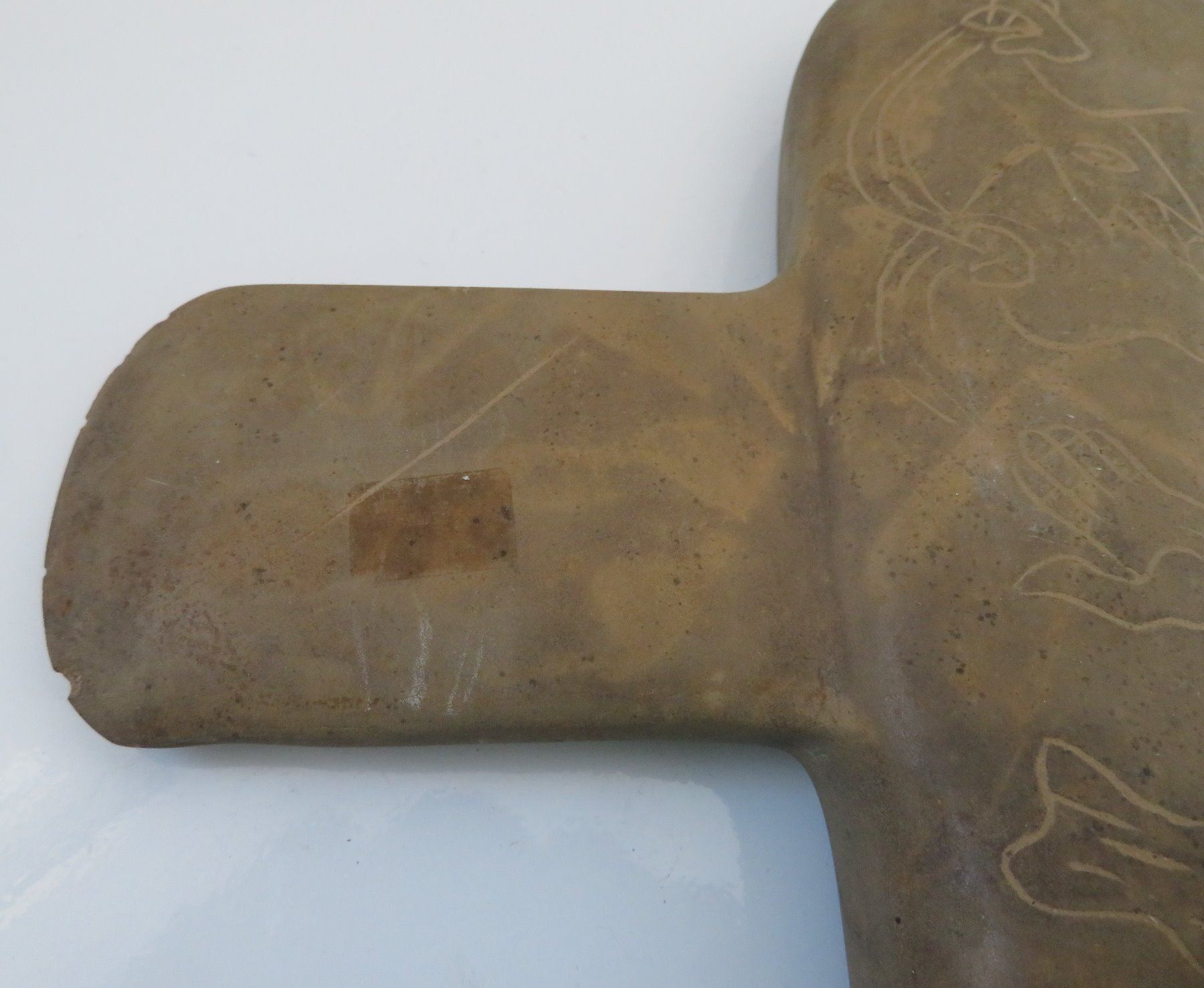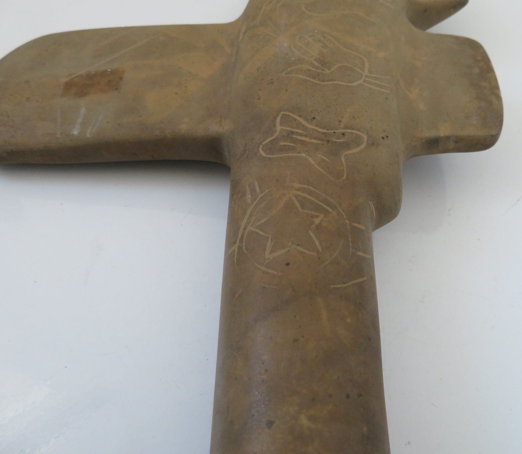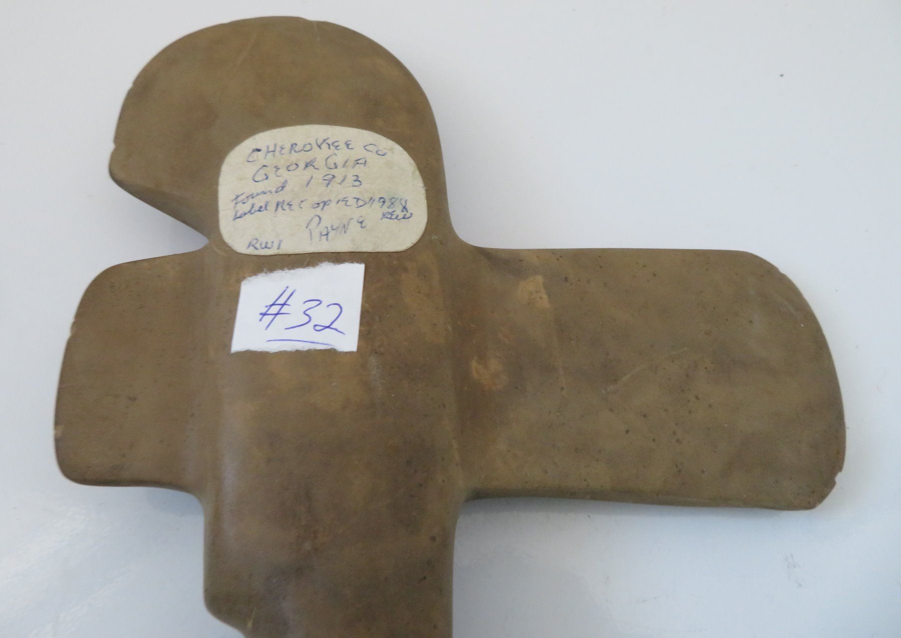 Monolithic Axe, historic item. Made of hardstone, the item measures 13 1/2" long. Cherokee County, Georgia. Ex-Payne collection, nice engraving. Condition: Good, flea bite bit, see images. Shipping: $45.00 USA estimate only, due to value, double-boxed.