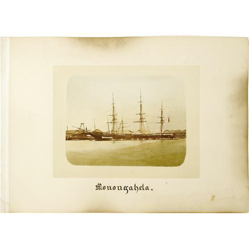 <B><I>Cruise of the "Monongahela":</B></I></B></I> <B>Collection of 96 Circa 1880 Hand-Tinted Albumen Photographs from China and Japan.</B></I> The U.S.S. <I>Monongahela</B></I> was commissioned in January 1863 and first saw service during the Civil War. She was then assigned to the West Indies and cast ashore by a tidal wave at St. Croix on November 18, 1867 and refloated six months later. In 1873, after extensive repairs, <I>Monongahela</B></I> began service in the Pacific and Asiatic waters. Later converted to a sailing store ship and then used as a ship-rigged training ship, she was destroyed by fire at Guantanamo Bay, Cuba on March 17, 1908. On one of this ship's voyages to the Orient, someone on board put together this amazing photo album (18" x 13", silk and leather bound, spine missing) containing nearly one hundred incredible images of the type that were popular during what's known as the <I>Meiji</B></I> era in Japan. <BR><BR>The Edo (or Tokugawa) era of Japanese history lasted from 1603 to 1867 and was marked by a self-imposed isolationism; Japan was a medieval society locked in time. In 1868, after the overthrow of the Shogun and his Samurai by imperial forces, Prince Meiji (Mutsuhito) initiated a period of industrial growth and Westernization that lasted throughout his reign of 45 years. This period is called the <I>Meiji</B></I> (enlightened peace) Restoration. The Emperor encouraged his people to study abroad and he invited Americans and Europeans to tour his country. This was the era when Japanese photography began to blossom. A Greek photographer by the name of Felice Beato went to Japan and started documenting the country's landscapes, villages, and people. It was only when he started to delicately hand-color his black and white albumens that the local people began to accept his work. He hired Japanese woodblock artists to do the tinting, a tedious and slow process. Eventually, he set up "assembly lines" where one person would color the faces, another the clothing, and another the backgrounds. This sped up the process immensely and soon there were numerous practitioners of the art of handcoloring albumen prints for tourist (and also local) consumption. This is a very popular area of collecting today and these images often sell for hundreds of dollars apiece. <BR><BR>The photographs in this album are laid down to very heavyweight pages, front and back. Sizes range from 9" x 7" up to 9" x 13" (approximately) and all have descriptive captions either written underneath or, in a couple of cases, printed into the negative. Some have stock numbers or Japanese characters (signatures) also made into the negative. The condition of these photos is generally excellent. The album and some of its pages do show signs of water staining in the lower margins, not affecting the photos. The first picture in the album is of the U.S.S. <I>Monongahela,</B></I> followed by several images of Shanghai, including the Public Gardens, Pootung Point, the Club House, Woosning River, Hong Kew Creek, and the Custom House. Next are some fascinating images of the Chinese people- a Mandarin Family, a Country Cart and Driver, and Chinese Girls in seasonal costumes. Apparently the journey then took them to Japan, starting with various views of Nagasaki, then of Kobe (including the waterfall- several shots), the road to Arima, Tamba, next to Kioto (Kyoto), Yokohama, Tokio (Tokyo), and also Fusiyama, Imoto, and Nikko. Included in the album are very desirable images of jinrickshas, temples, a wedding party, gardens, geisha girls, and sumo wrestlers. <BR><BR>It is possible that some of these photos were taken by a ship photographer but most, if not all, were commercial images purchased locally at the various sites and likely include known photographers of the period such as Hikoma Ueno, Kihei Tamamura, Kohzaburo Tamamura, Kinbei Kusakabe, Kazumasa Ogawa, Kuichi Uchida, Hidesaburo Usui, Renjo Shimo-oka, and Shin-ichi Suzuki. This is, without a doubt, one of the finest groupings of <I>Meiji</B></I> era photographs to come to market for some time and should generate great interest among collectors, historians, and dealers.<BR><BR><b>Shipping:</b> Books & Catalogs (<a target="_blank" href="http://www.heritageauctions.com/common/shipping.php">view shipping information</a>)