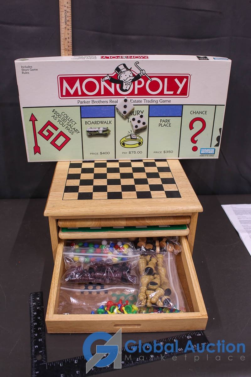 Monopoly & 10 in 1 Wooden Game Set (Missing Pieces)