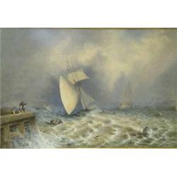 Monrage watercolour, Shipping off the coast in rough seas, indistinctly signed and dated 1866, 26 x 38 ins. £800-1,000