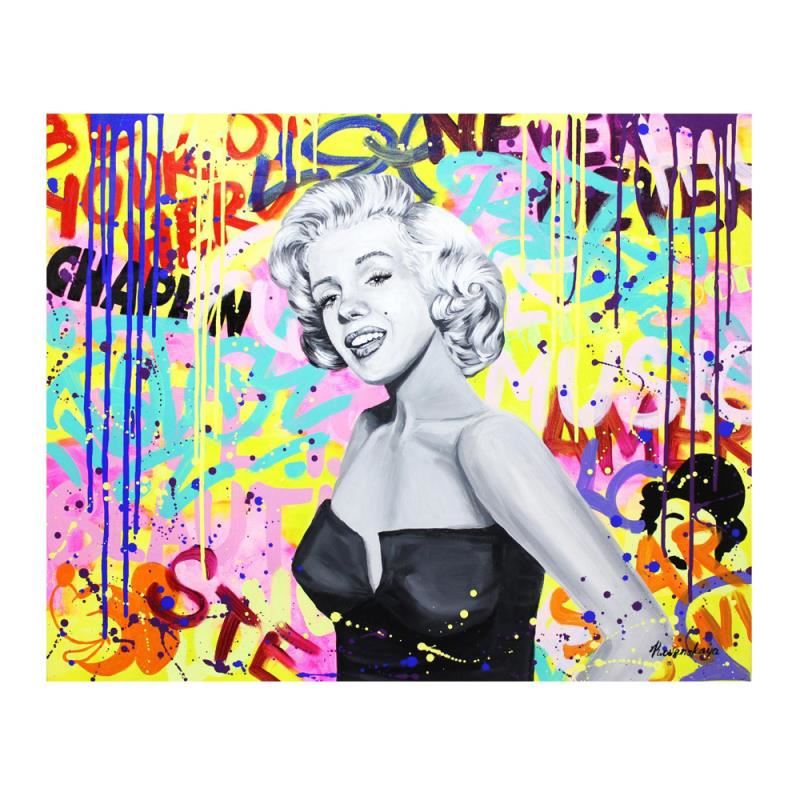"Monroe in Grey" is an original Oil on Canvas by Nastya Rovenskaya. The piece is hand signed and comes with a Certificate of Authenticity. Measures approximately 30" x 24".