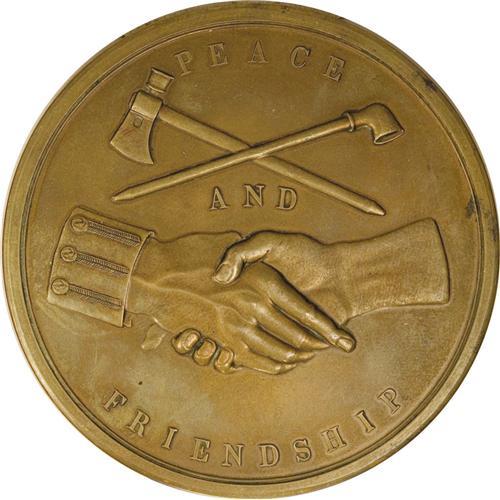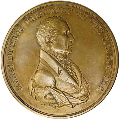 <B>Monroe Indian Peace Medal.</B></I> Bronze. Restrike. Iridescent patina over each side with only slight friction over the highpoints.