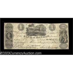 <TABLE cellSpacing=0 cellPadding=0 width="100%" bgColor=#000000 border=0><TBODY> <TR><TD width="100%"><TABLE cellSpacing=1 cellPadding=3 width="100%" border=0><TBODY><TR><TD width="100%" bgColor=#79735c><FONT face=arial color=#ffffff size=3><B>Description</B> </FONT></TD></TR><TR><TD width="100%" bgColor=#ffffff><FONT face=arial size=2><B>Monroe, MI- Bank of Monroe</B></I> $1 Aug. 1, 1828 G2a Lee MON 2-4<BR>A very high grade example of this very scarce note, this with a different plate position letter than the other $1 from here offered in the sale. <B>Very Fine,</B></I> with this note a plate piece in the new Lee reference. (400-700 ) </FONT></TD></TR></TBODY></TABLE></TD></TR></TBODY></TABLE><BR><TABLE cellSpacing=0 cellPadding=0 width="100%" bgColor=#000000 border=0><TBODY><TR> Important notice: Heritage usually auctions material at the rate of 200-250 lots per hour. On some occasions eBay Live bid software or the Internet may not be able to keep up with the pace of the auction. We recommend placing a realistic absentee bid now as insurance to avoid disappointment. Occasionally the auctioneer may eliminate or reject an eBay Live bid, and the auctioneer may also reopen a lot after the close of the eBay live bidding (usually because we missed an audience bid), and may reject your bid even if it shows you as the winning bidder. By bidding via eBay Live, you agree that Heritage may award the lot to another bidder at its sole discretion under the circumstances described above or any other reasonable circumstances. Also please note that all Heritage lots purchased through eBay Live carry a 20% Buyer's Premium. Please make sure you read the Terms and Conditions before you bid.</TR></TBODY></TABLE>