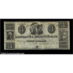 Monroe, MI- Merchants & Mechanics Bank $3 G12 Bowen 7A nicely grade albeit falsely filled in $3 exam