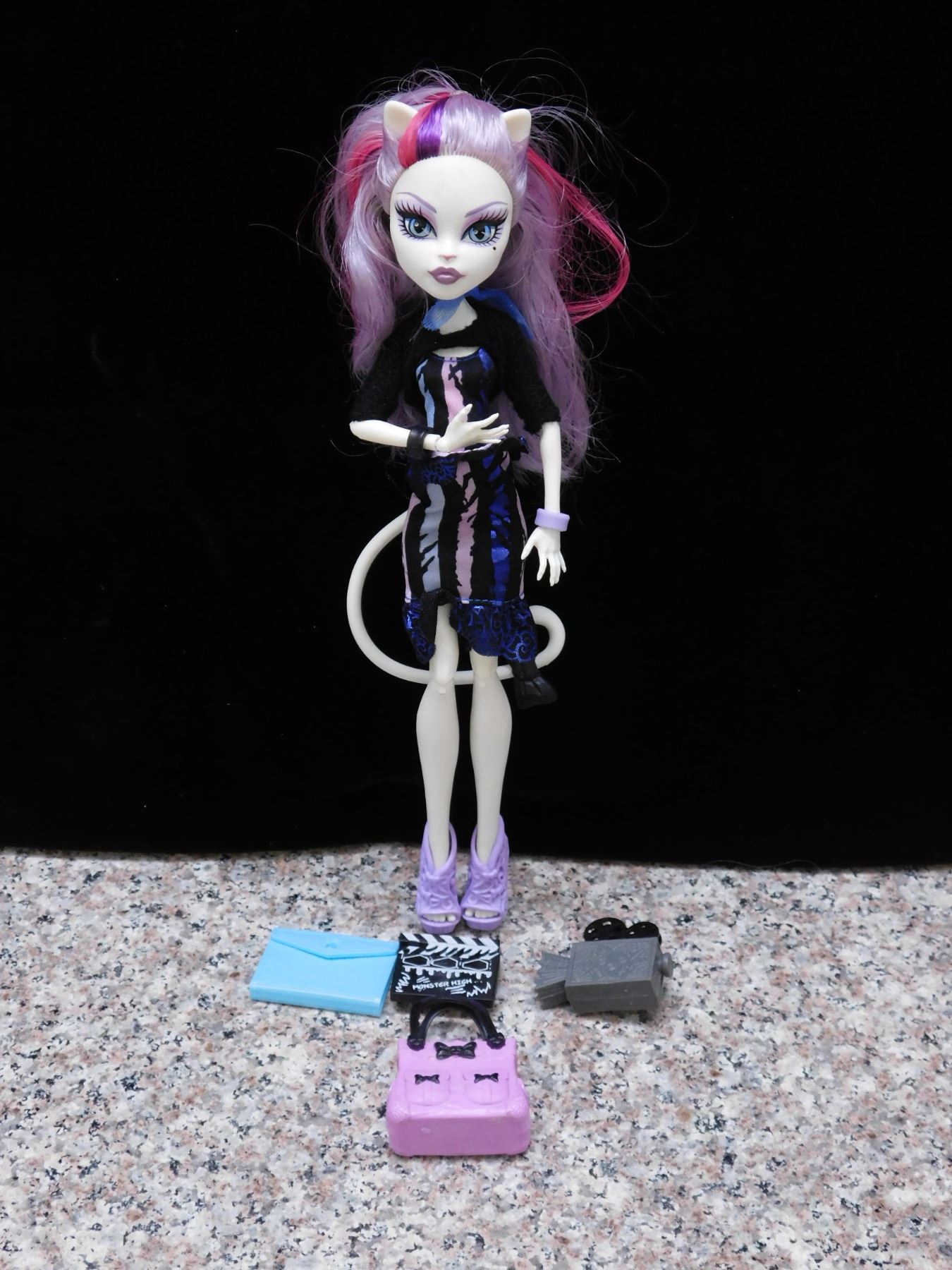 Includes original purse and extra accessories (Oparetta?). no stand. previously displayed. small sticker residue on forehead.
