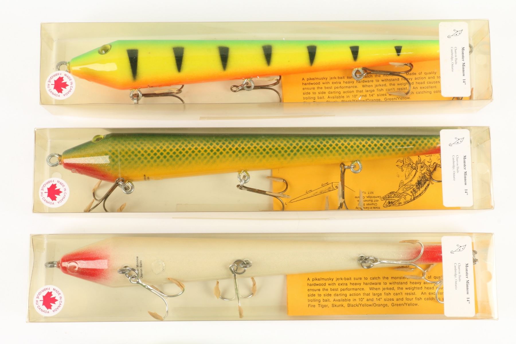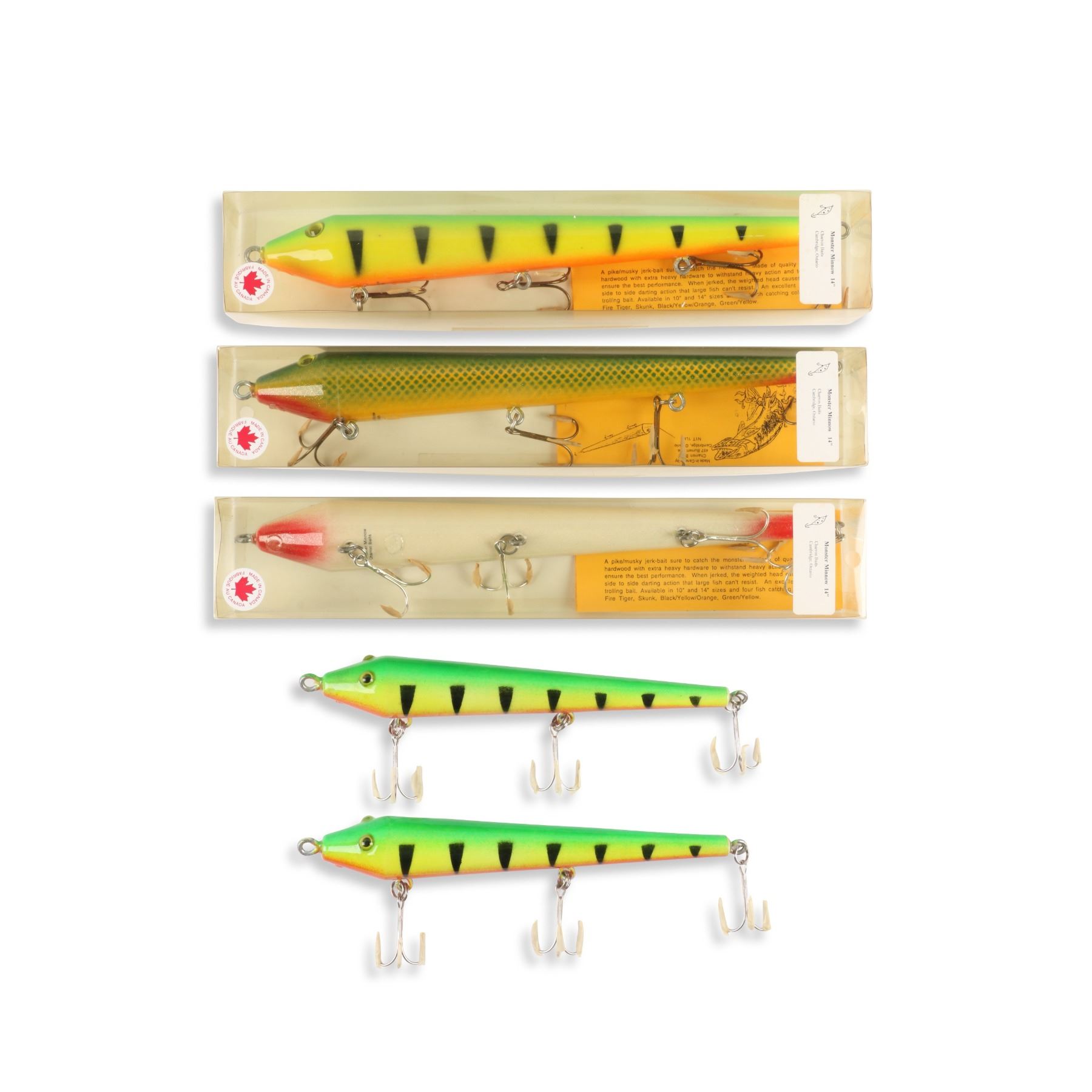 Charron Baits, Canada. Material: Wood. Quantity: 5. Grade: EX+. 11" - 14" Est. $100-125.
